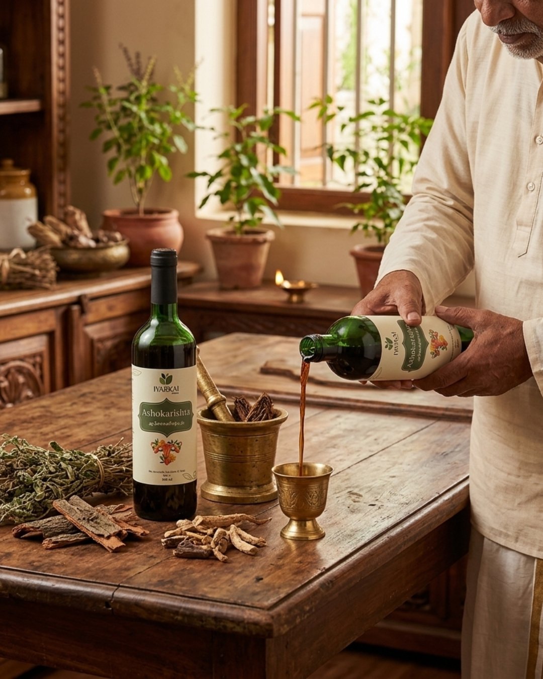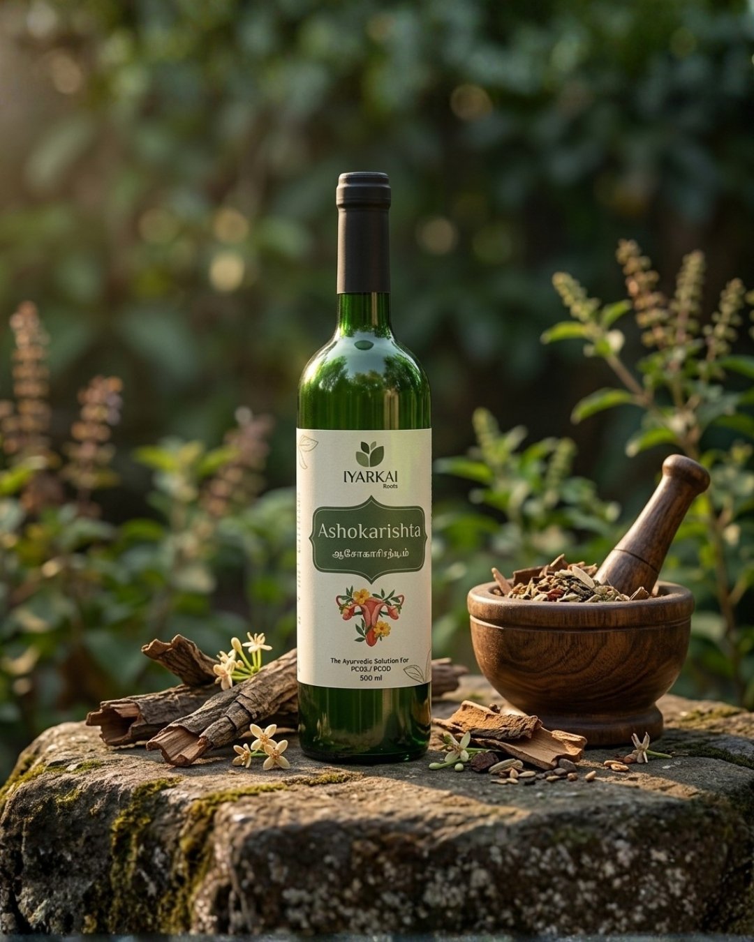 Iyarkai Roots Ashokarishta is a time-honored Ayurvedic tonic specifically formulated to support women's reproductive health. Prepared according to The Ayurveda Formulary of India – Part 1, this potent herbal liquid is a trusted natural remedy for managing menstrual discomfort.