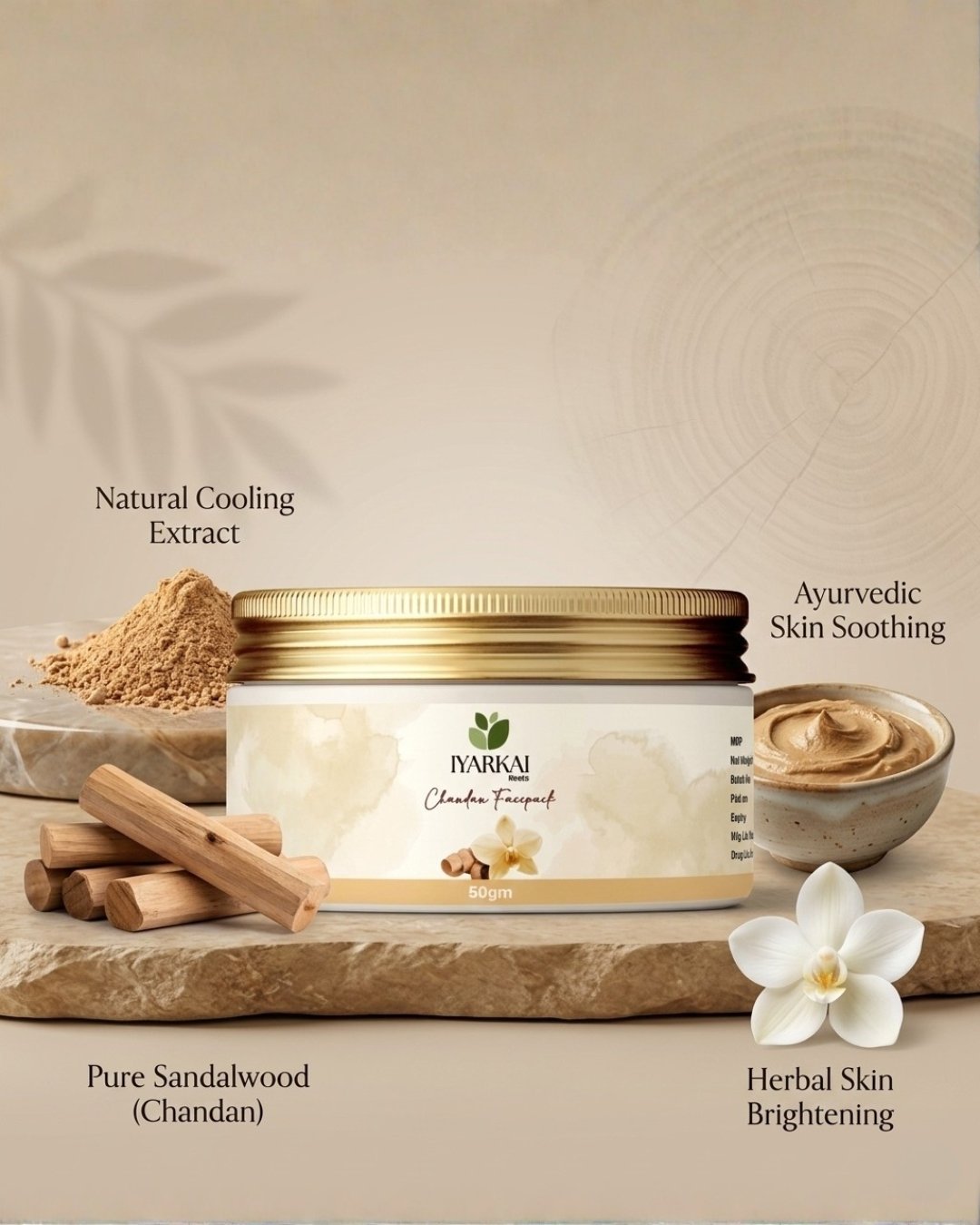 Iyarkai Roots Chandan Face Pack is a herbal face treatment formulated to cleanse, soothe, and refresh the skin using traditional botanical ingredients. Designed for regular use, it helps purify the skin, control excess oil, and support a clear, balanced complexion.