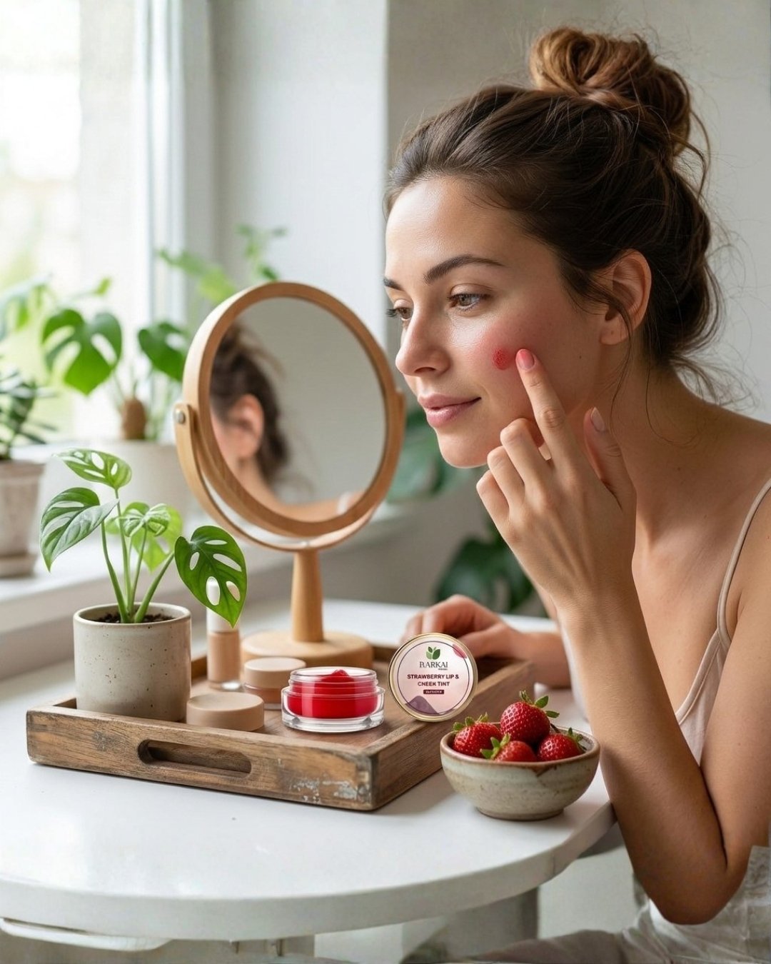 Iyarkai Roots Strawberry Lip & Cheek Tint is a multi-purpose natural tint formulated to add a soft flush of color while nourishing the lips and cheeks. Made with plant-based oils and butters, it provides everyday hydration and a smooth, comfortable finish suitable for daily use.