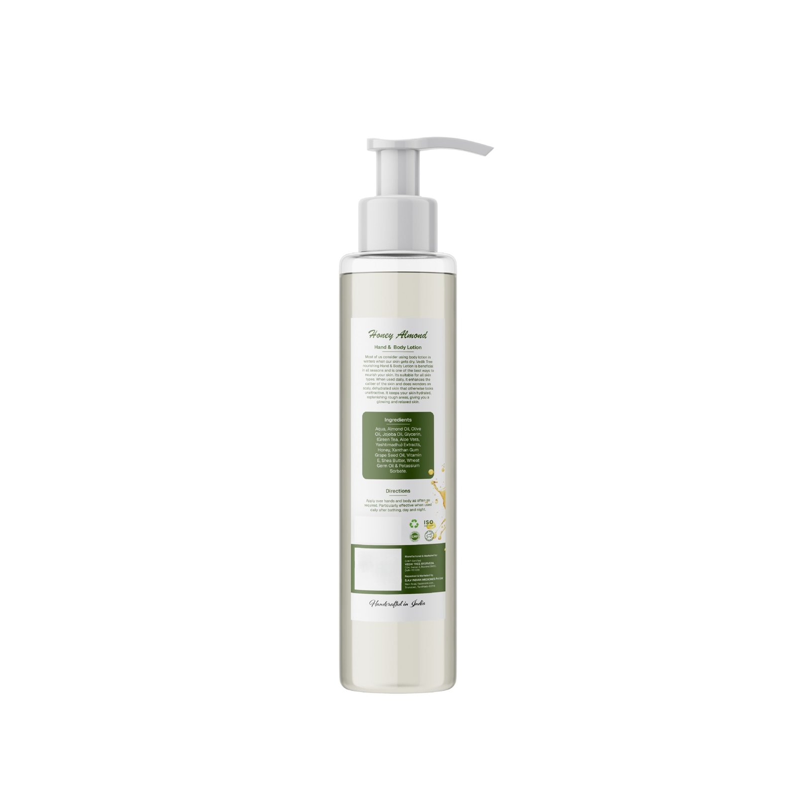 Honey Almond Hand & Body Lotion is a nourishing herbal moisturizer enriched with Almond Oil, Honey, Shea Butter, and Vitamin E. Suitable for all skin types, it deeply hydrates, repairs dry and rough skin, and leaves your skin soft, glowing, and healthy all year round. Handcrafted in India for natural, effective care.